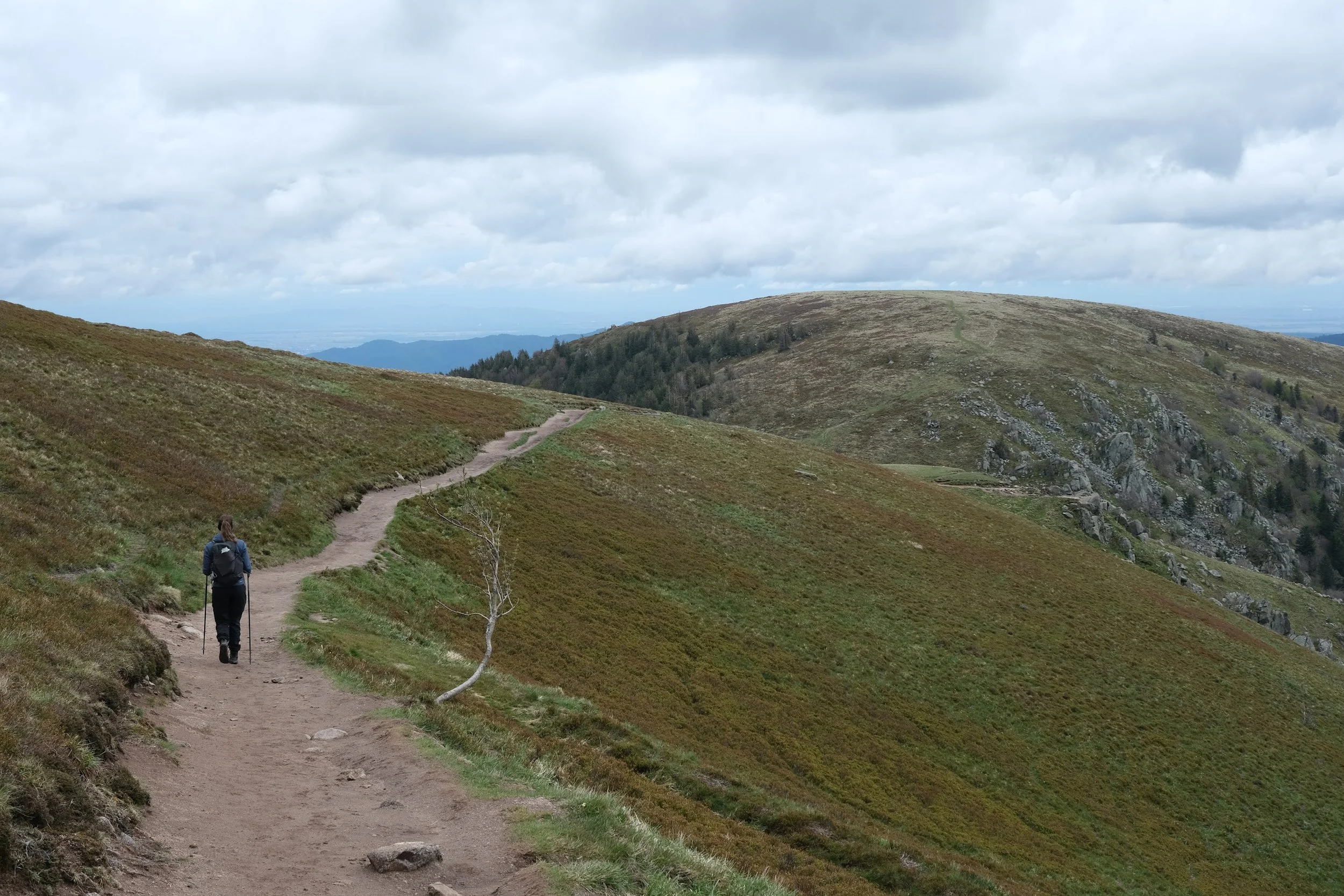 This is a route that is originally about 18km long. We chose to shorten it a bit, by looping back around Lac Vert. You start out from Col de la Schlucht, and climb up through forest paths with good views to parking Dreieck. Here, you can choose to walk further to Gazon du Faing, or do what we did and cross over to Ferme Auberge Gaertlesrain and Lac Vert. This is a beautiful light green mountain lake surrounded by forests. The color comes from floating algae. From here, partly through forest and over ski slopes you walk back to Col de La Schlucht. This is not a very demanding route, which makes it ideal for an afternoon get away. The views are great and you pass plenty of opportunities for som food and drink along the way.