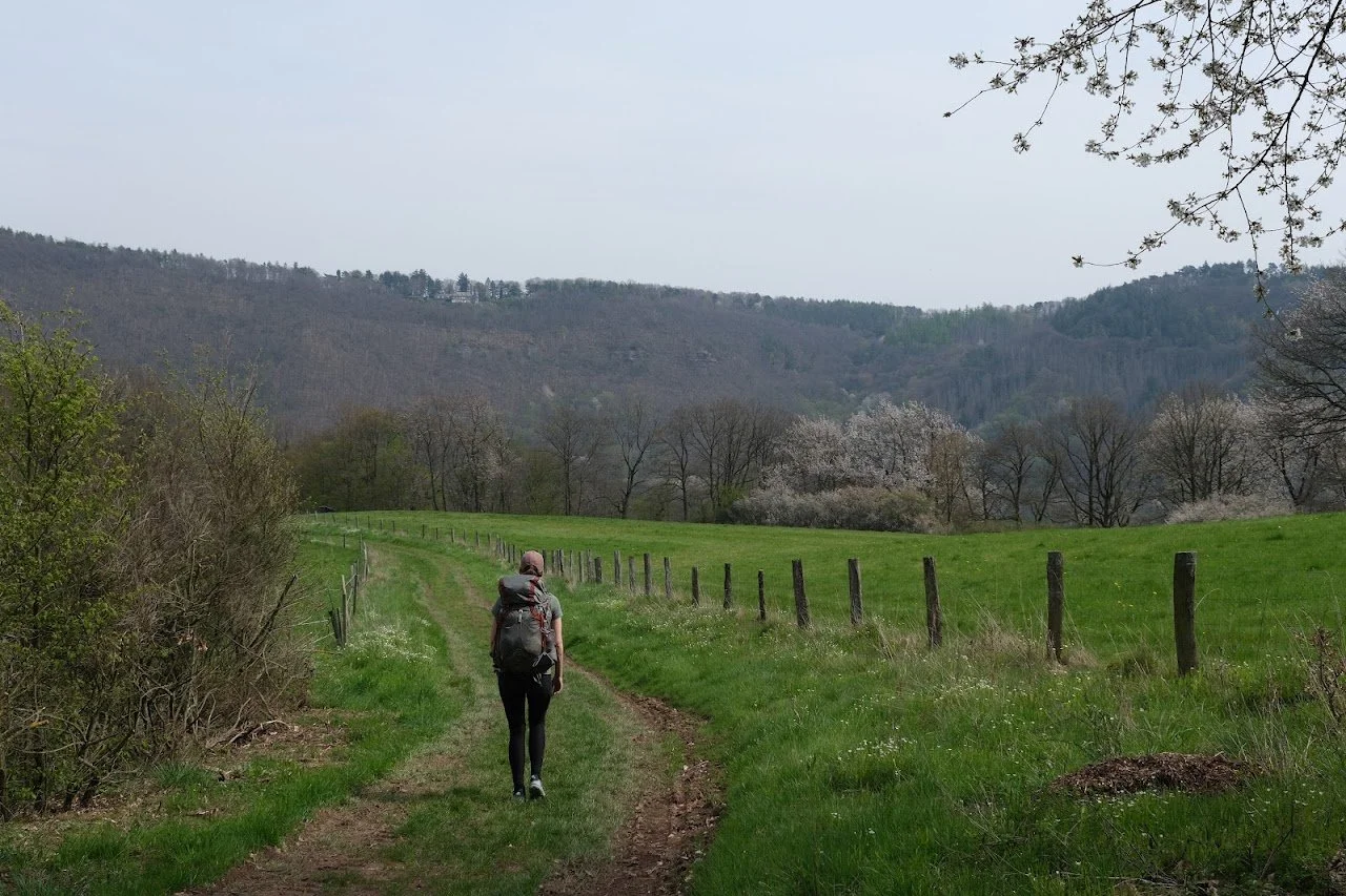 In april 2023, we booked a campsite for just ourselves and set off to Germany. It would become our first time camping outside of a camping with facilities. After triple-checking our gear, making sure we brought enough food and had plenty of water we set off on a beautiful hike through the park. Since we went quite early in the season, it was still quiet on the trails.